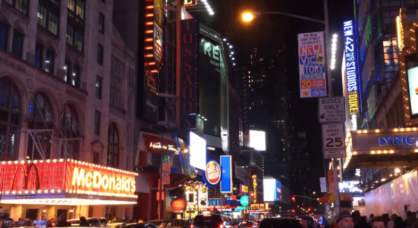 - Quảng trường thời đại (Time Square) – Quảng trường trung tâm thành phố New York rực rỡ với những ánh đèn màu và bảng quảng cáo. Đây là nơi thị trưởng thành phố phát biểu trước công chúng và tổ chức những sự kiện lớn của New York.